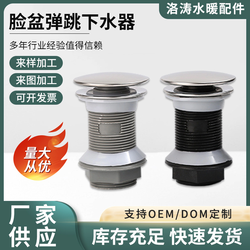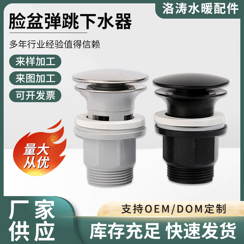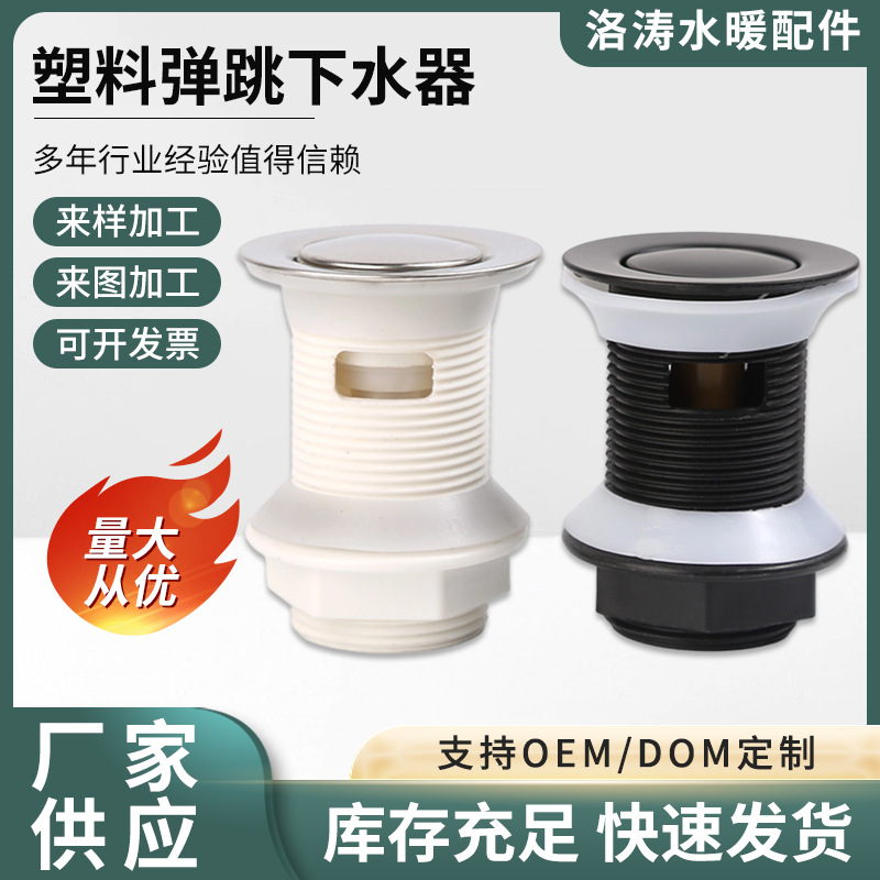 新款大盖无孔塑料弹跳下水器哑光黑大盖按压弹跳式面盆下水器