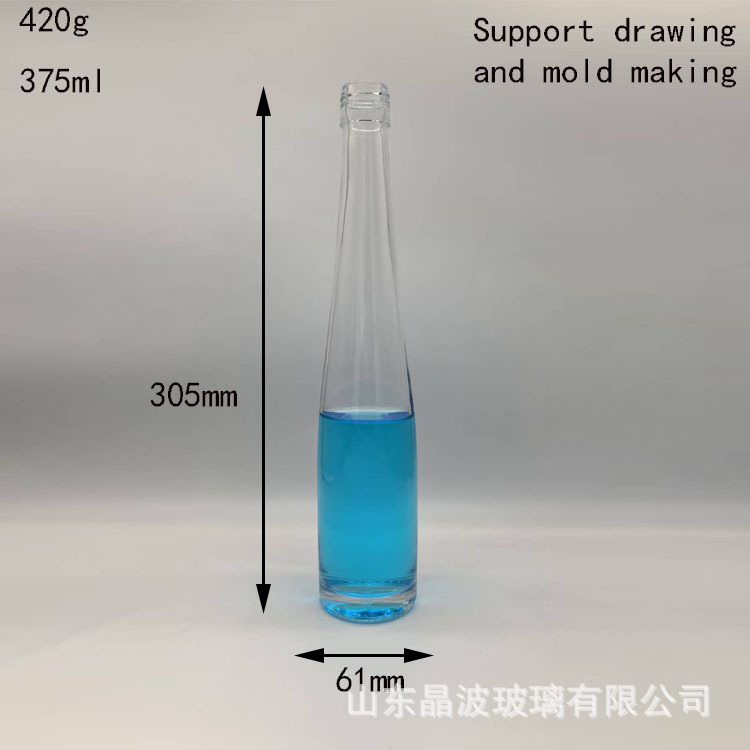 厂家定制批发晶白料375ml细高透明酒瓶 洋酒瓶 冰酒瓶