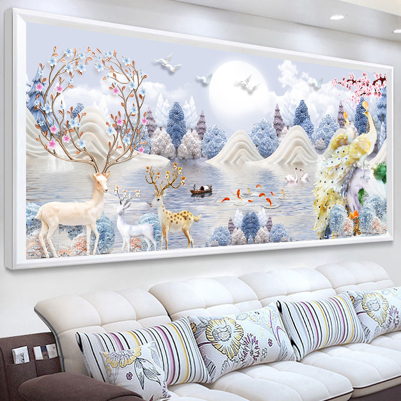 高端发财麋鹿孔雀十字绣2025年新款线绣客厅diy自己刺绣简约现代