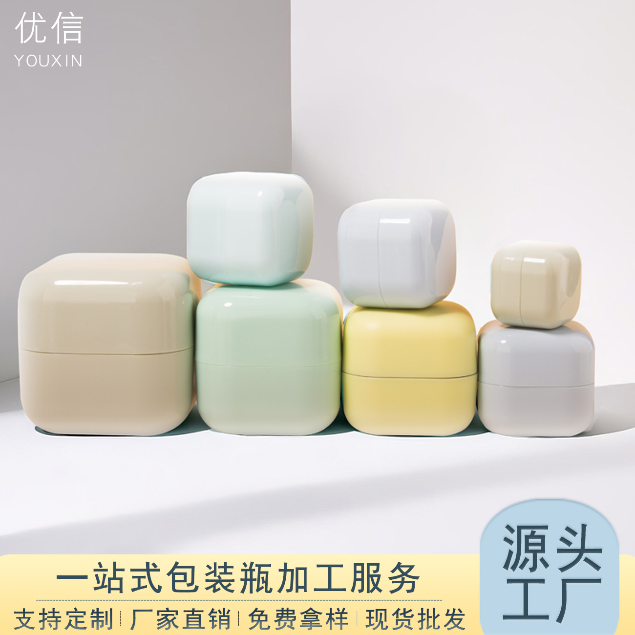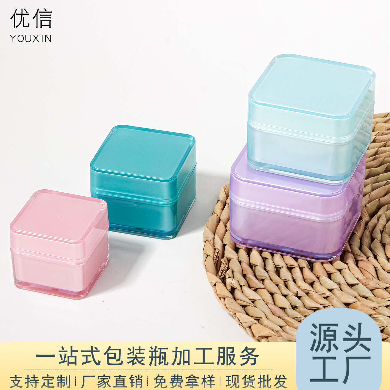 5g-200g四方弧形双层膏霜罐 面霜分装瓶卸妆膏瓶泥膜罐广口瓶包材