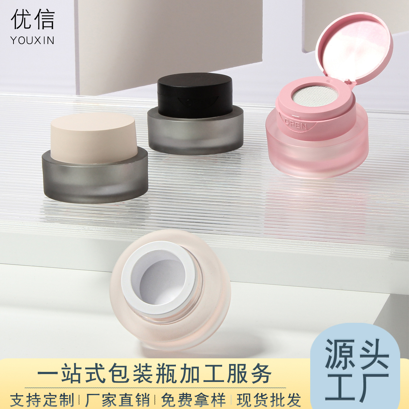3g/5g弹力网气垫拍拍胶罐 2g固态胶甲油胶罐磨砂翻盖甲油胶分装瓶