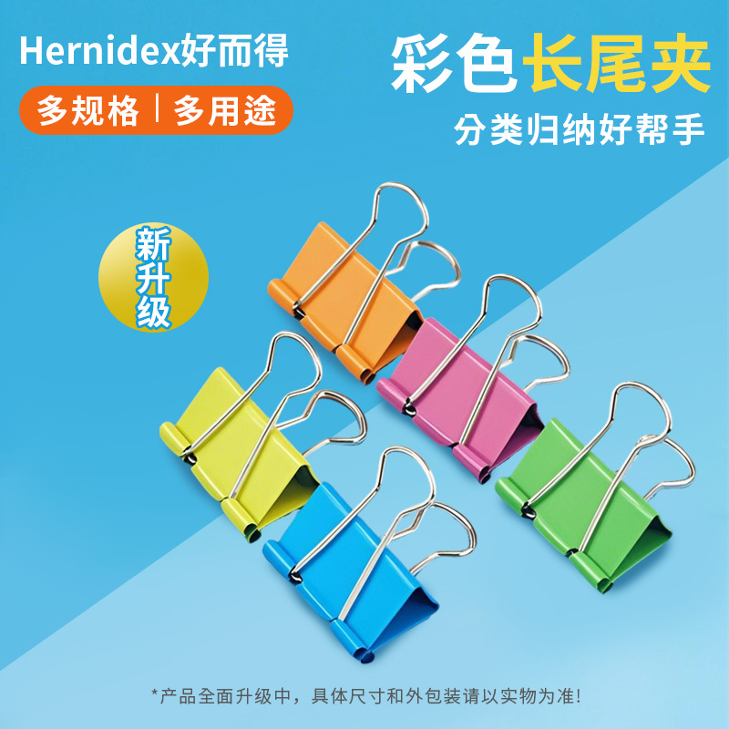 Hernidex好而得彩色长尾夹燕尾夹大号中号小号票据铁夹子混合装