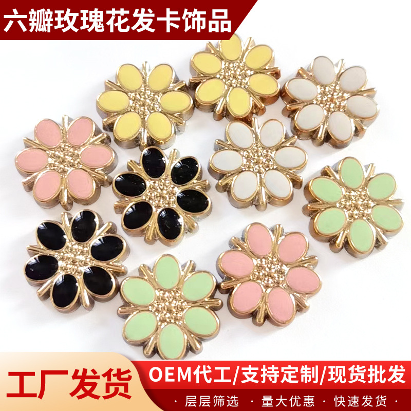 字母发卡饰品字母头箍饰品平底六瓣玫瑰花电镀UV玫瑰金+点油