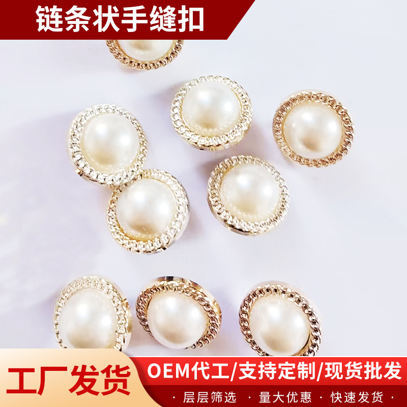 小香风金属扣子DIY大衣珍珠纽扣袖扣复古沙金色高脚钮扣厂家批发