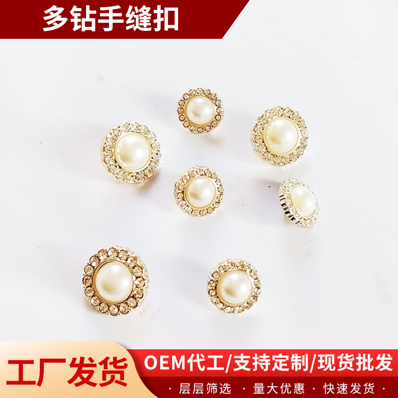 小香风珍珠双拼高档衬衫圆形服装女毛衣金边手缝扣子厂家批发