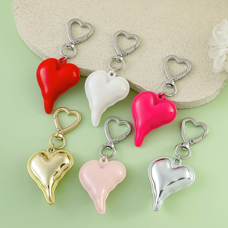 新款ins风金属钥匙扣配饰挂件爱心y2k 挂饰跨境爱心桃心包钥匙扣