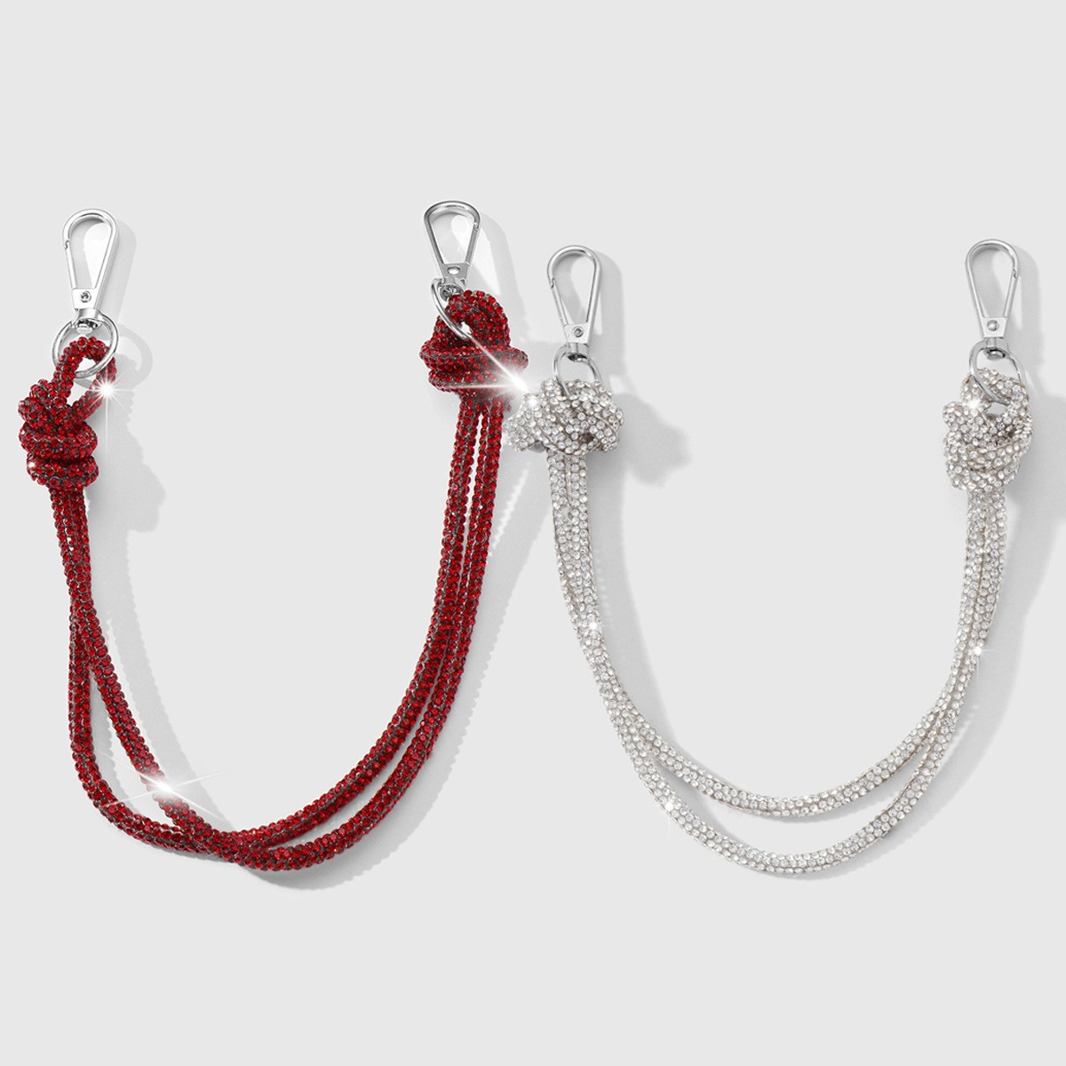y2k时尚精致轻奢银色/红色亮闪仿水钻双条打结单肩链条DIY包挂件