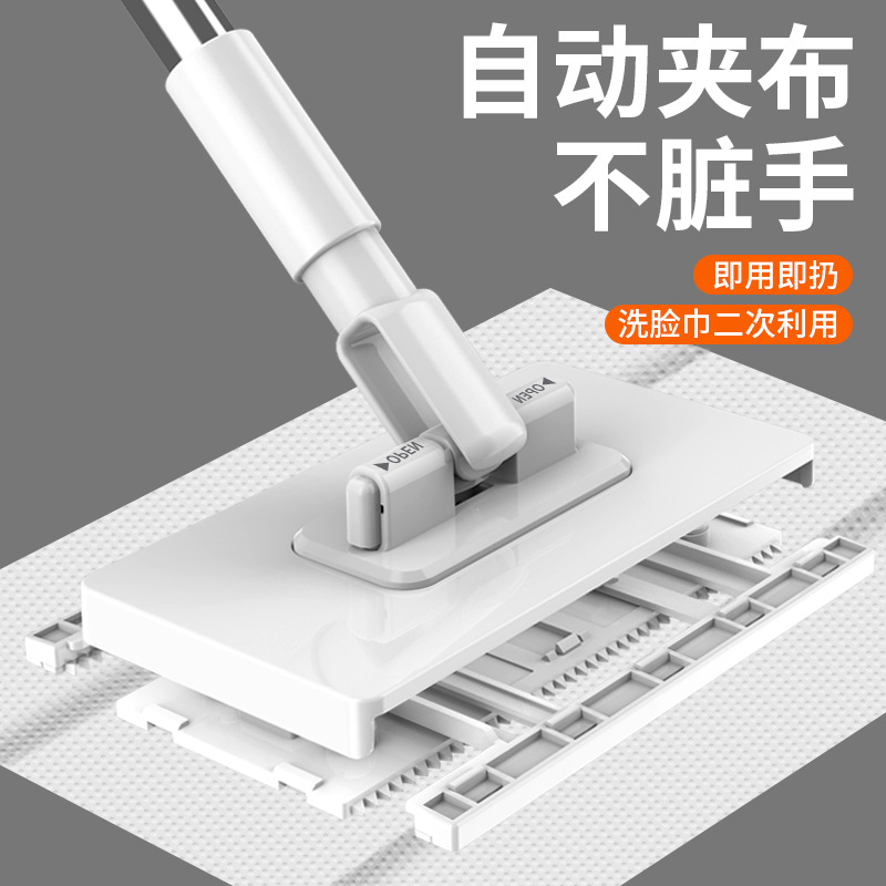 自动夹布家用洗脸巾拖把除尘擦厨房去油污懒人拖把自夹布拖把