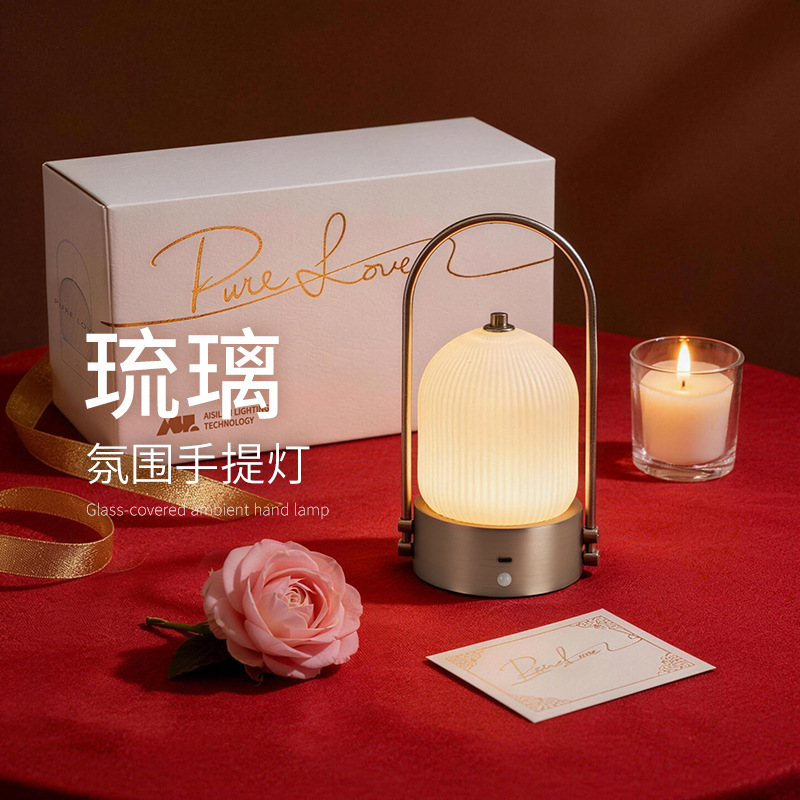 跨境中古丹麦手提台灯床头卧室客厅极简便携充电触摸氛围露营夜灯