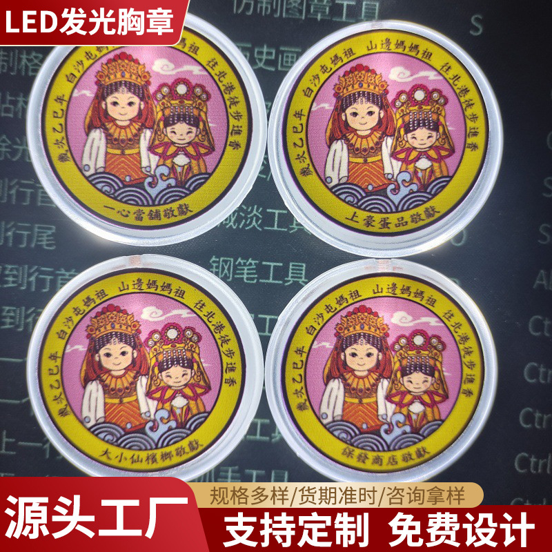 批发led发光胸章 亚克力发光胸针胸牌 企业年会庆典纪念发光徽章