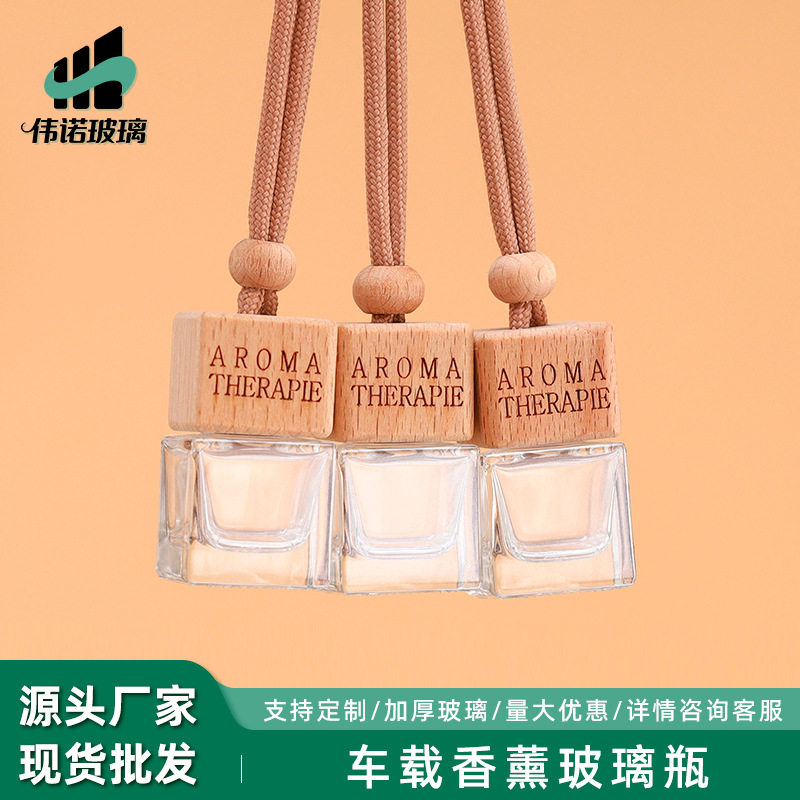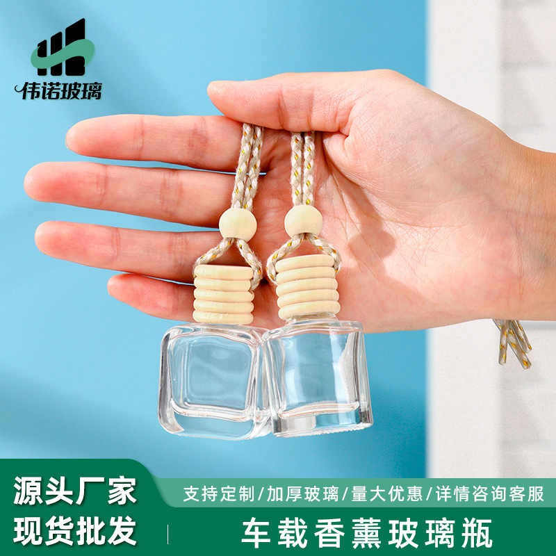 跨境简约方形玻璃香薰车载挂件香薰扩香瓶迷你香水分装瓶8ml10ml