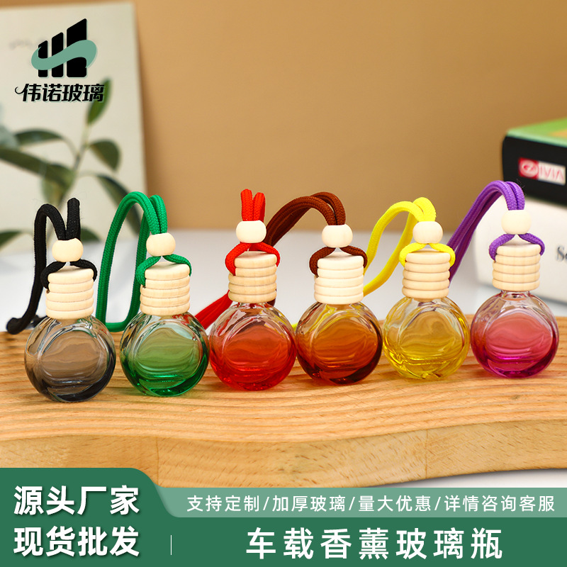 车载香薰挂件玻璃瓶圆形彩色香薰瓶精油扩香器香氛香水瓶吊绳