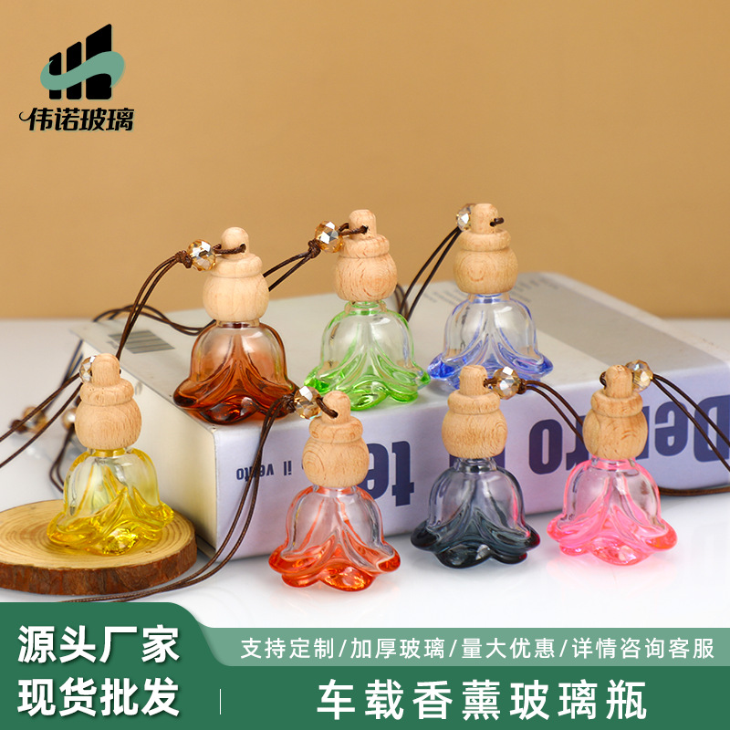 车载香薰玻璃瓶挂件内饰小巧扩香器10ml彩色玻璃带挂绳香薰瓶