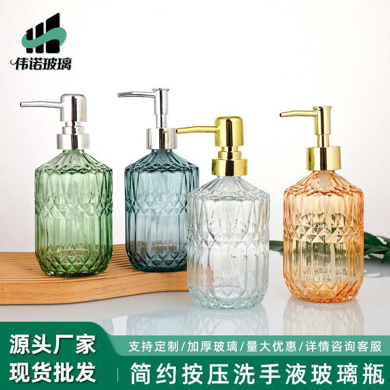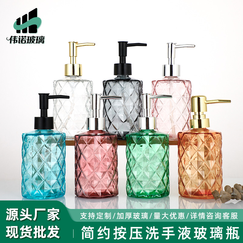 菱形钻石玻璃洗手液瓶空瓶按压沐浴露瓶民宿酒店乳液包装瓶跨境