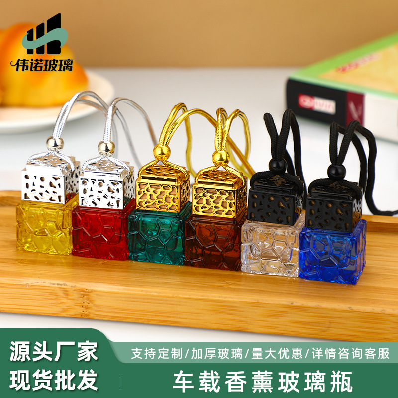 方形水立方车载香薰玻璃瓶车内饰挂件扩香瓶香氛吊坠香薰瓶批发