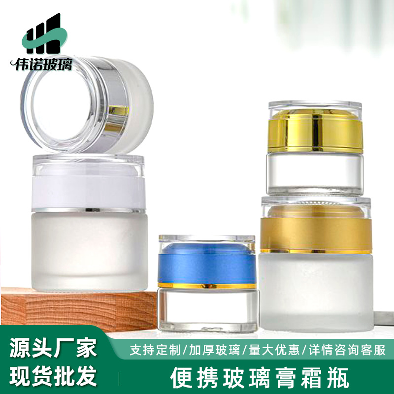 简约便携玻璃膏霜瓶化妆品膏霜瓶日霜晚霜分装玻璃瓶加厚眼霜瓶