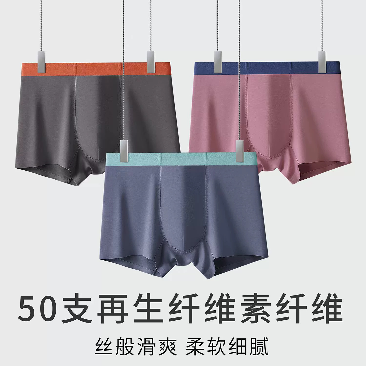 100支莫代尔男士内裤男生无痕混纺桑蚕抑菌裆部四角裤平角短裤头