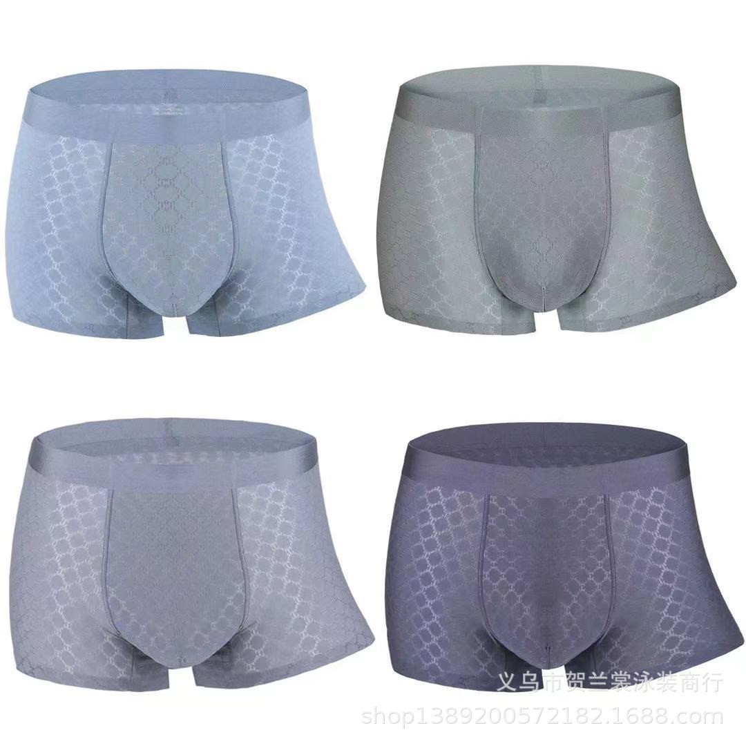 厂家现货批发冰丝男士无痕平角四角内裤速干透气Mens underwear
