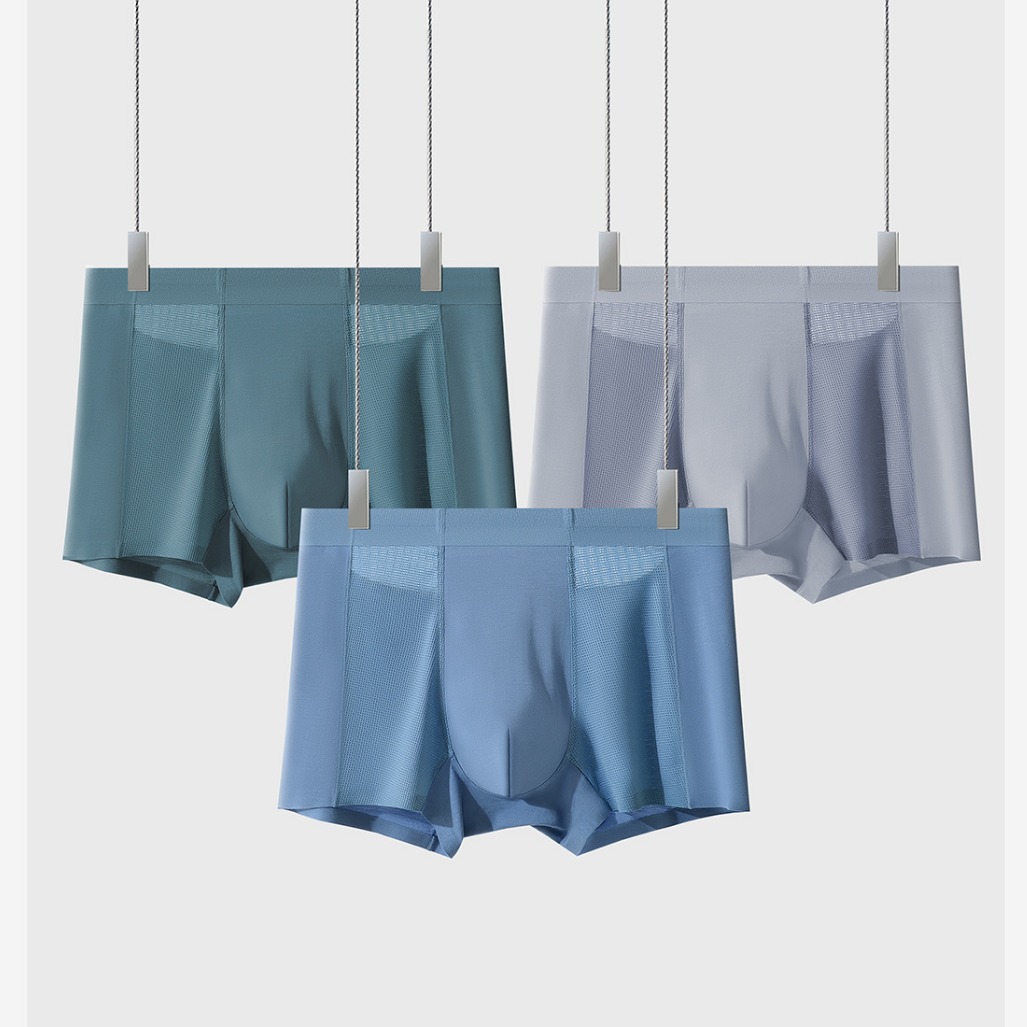 男士内裤无痕冰丝网孔夏季薄款抑菌裆部男生运动四角裤平角短裤头