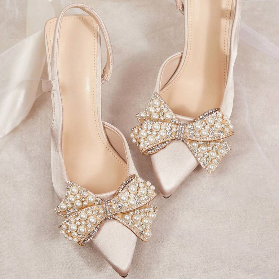 25新款高级感蝴蝶结气质凉鞋时尚鞋扣流苏小众珍珠饰品显瘦高跟鞋