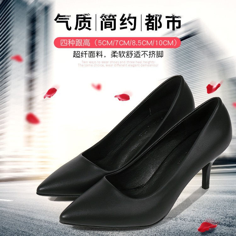 法式单鞋女黑色三--至7公分不累脚新款软皮职业细跟中跟气质通勤