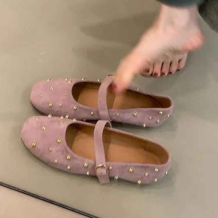 铆钉平底单鞋女2026新款秋冬浅口玛丽珍鞋复古气质方头女鞋