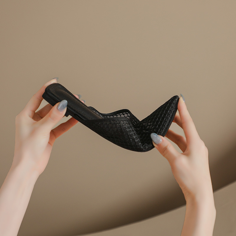 欧洲站2025夏新款尖头平底凉鞋ins懒人半拖仙女风包头穆勒鞋