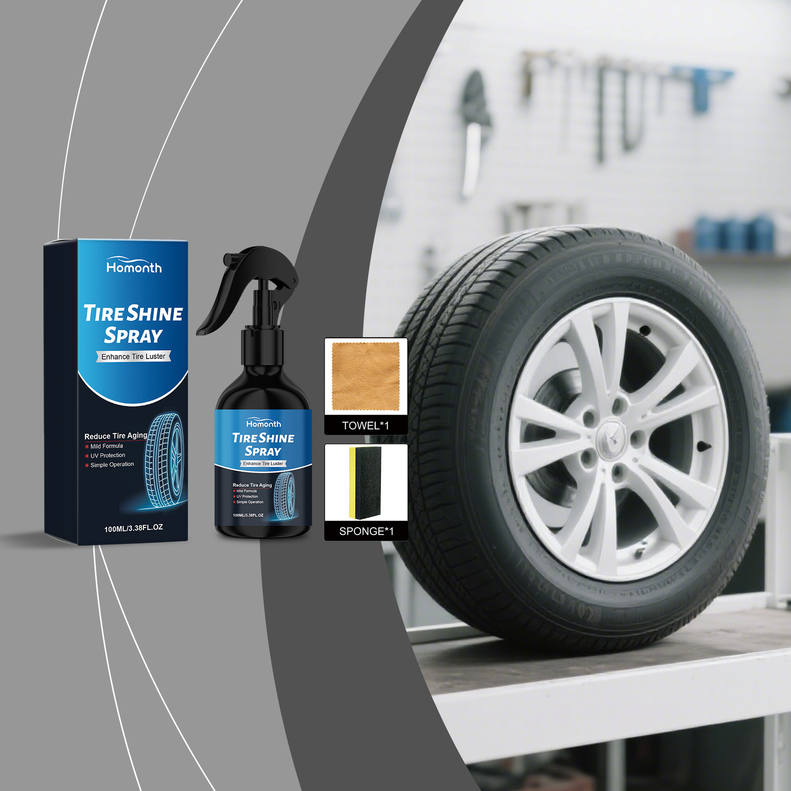 HOMONTH轮胎光泽喷雾 日常清洁汽车轮胎去污抛光翻新光亮护理剂