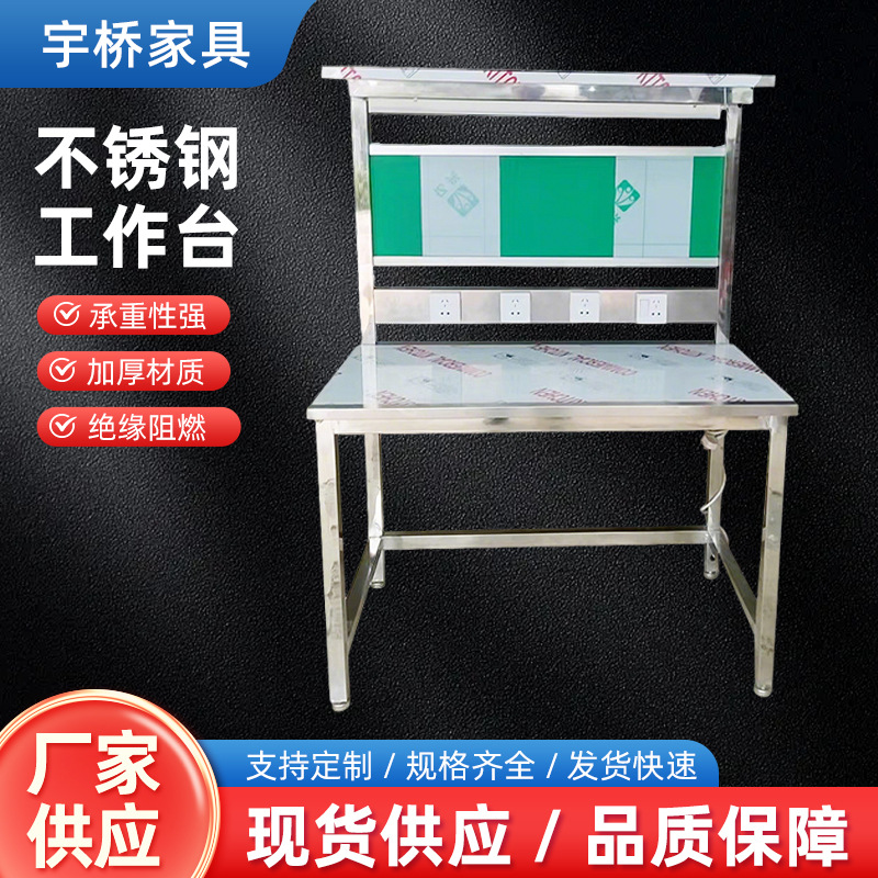 定制不锈钢工作台带灯带插座检验电子工厂车间操作台工作桌双工位