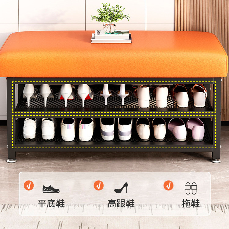 家用入户玄关穿鞋凳简约皮质软包换鞋凳坐凳一体进门铁艺收纳凳子