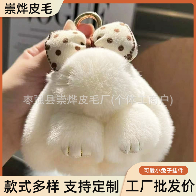 网红DIY创意饰品可爱仿獭兔毛蝴蝶结装死兔钥匙扣挂件包包吊坠