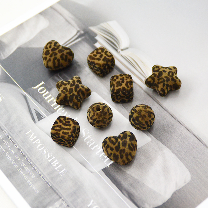 豹纹diy饰品配件植绒立体星星爱心圆珠方块绒面串珠链手链材料