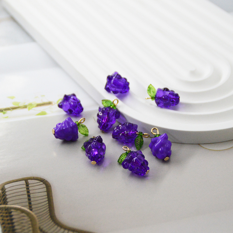 紫色葡萄diy饰品配件百搭小巧绿叶手工葡萄耳饰吊坠水果挂件精致