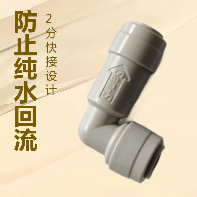 反渗透ro机配件接头2分单向逆止阀止回阀L型快接弯头逆止阀灰色