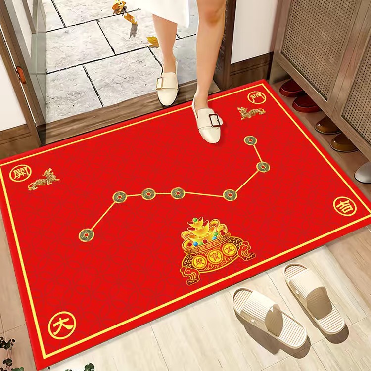 七星拱月聚宝盆图案土黄色入户门垫七星九运过门垫黄蓝绿红色脚垫