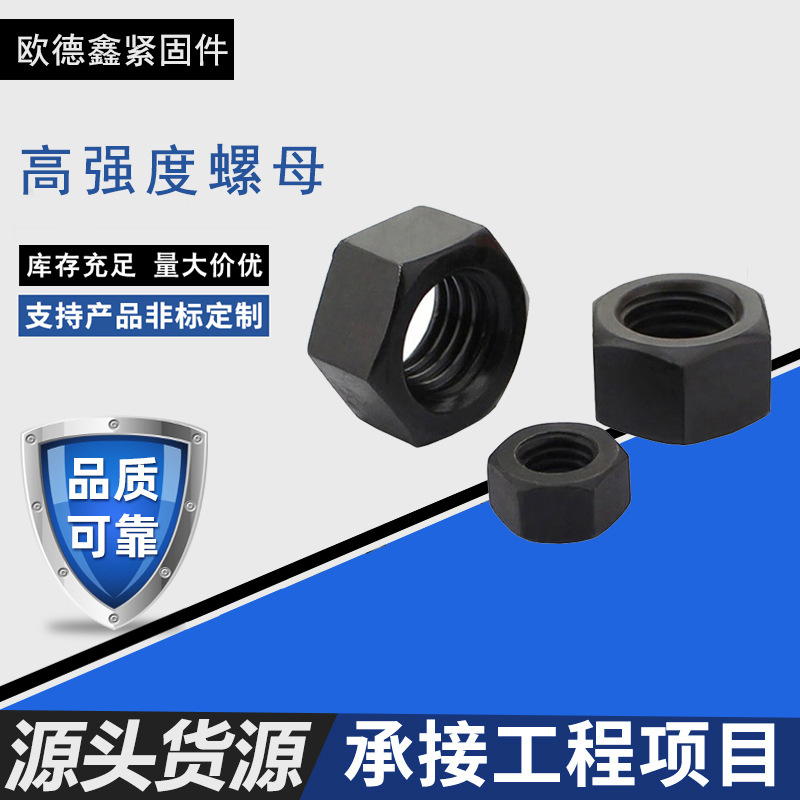 高强度六角螺母8.8级厂家直销国标发黑外六角高强螺母扣紧防松