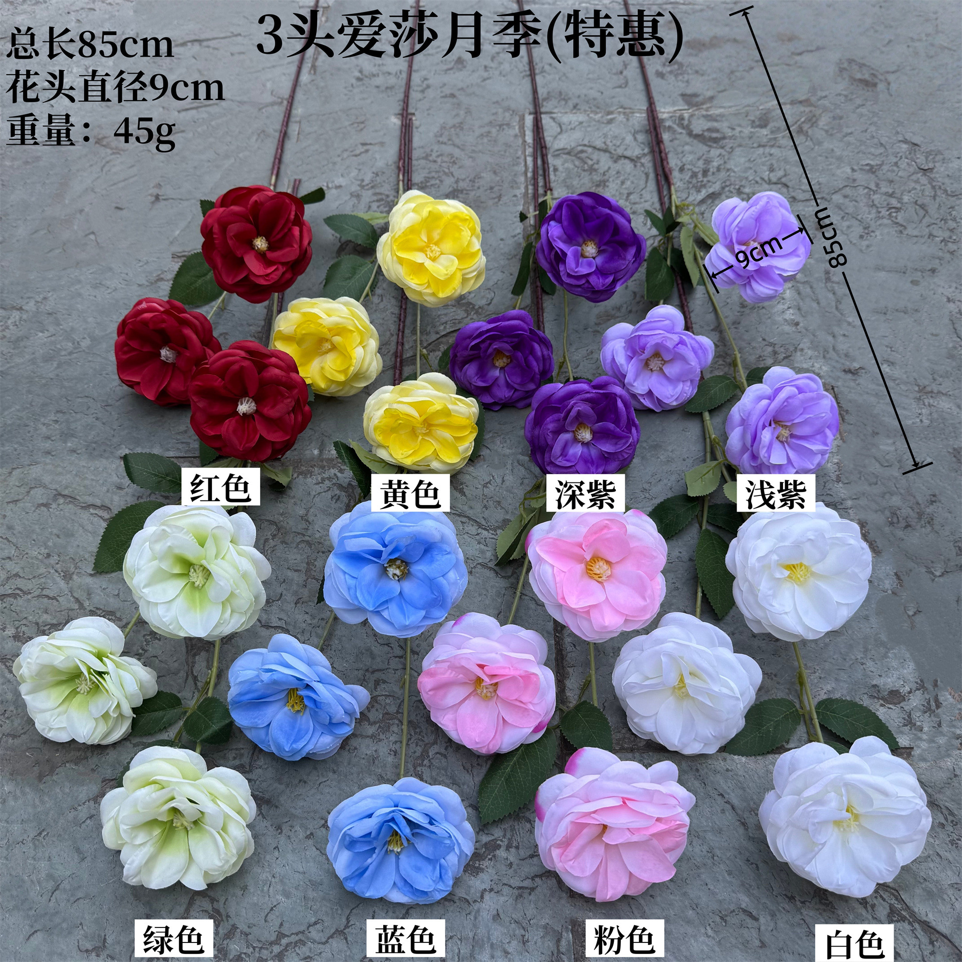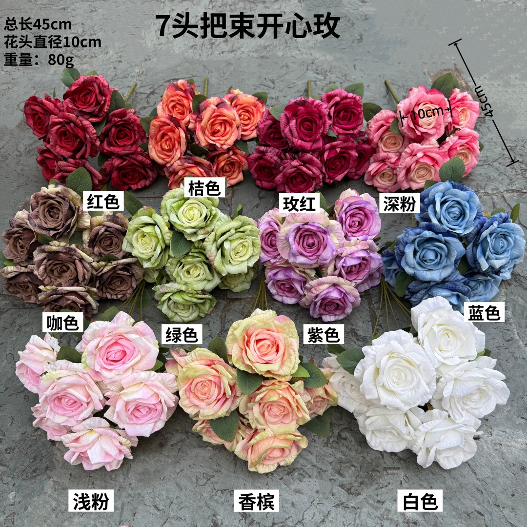 十二花神花开心玫仿真花假花汉服摄影照走秀道具婚礼外贸把束玫瑰
