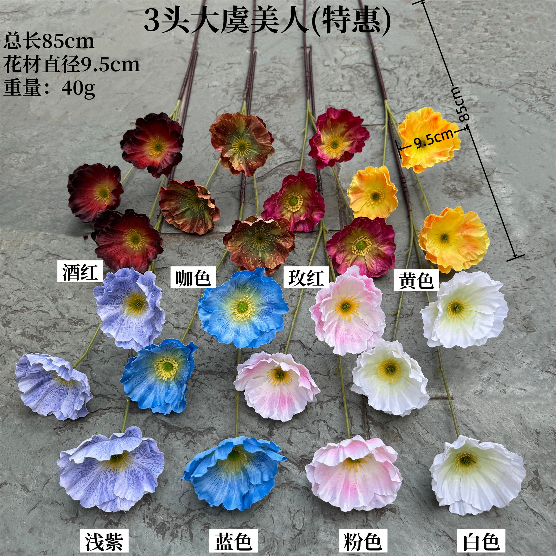 虞美人仿真花塑料假花客厅装饰花摆件餐桌花摆设玫瑰花仿生花束