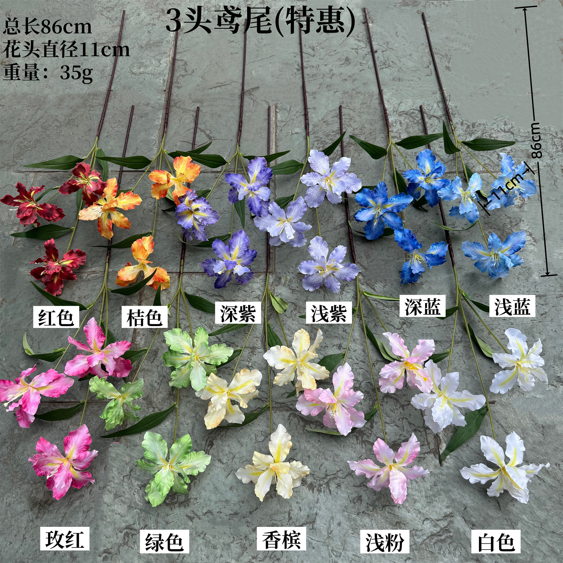 !假花仿真花束塑料花3头鸢尾花玫瑰绢布花干花家居摆设装饰