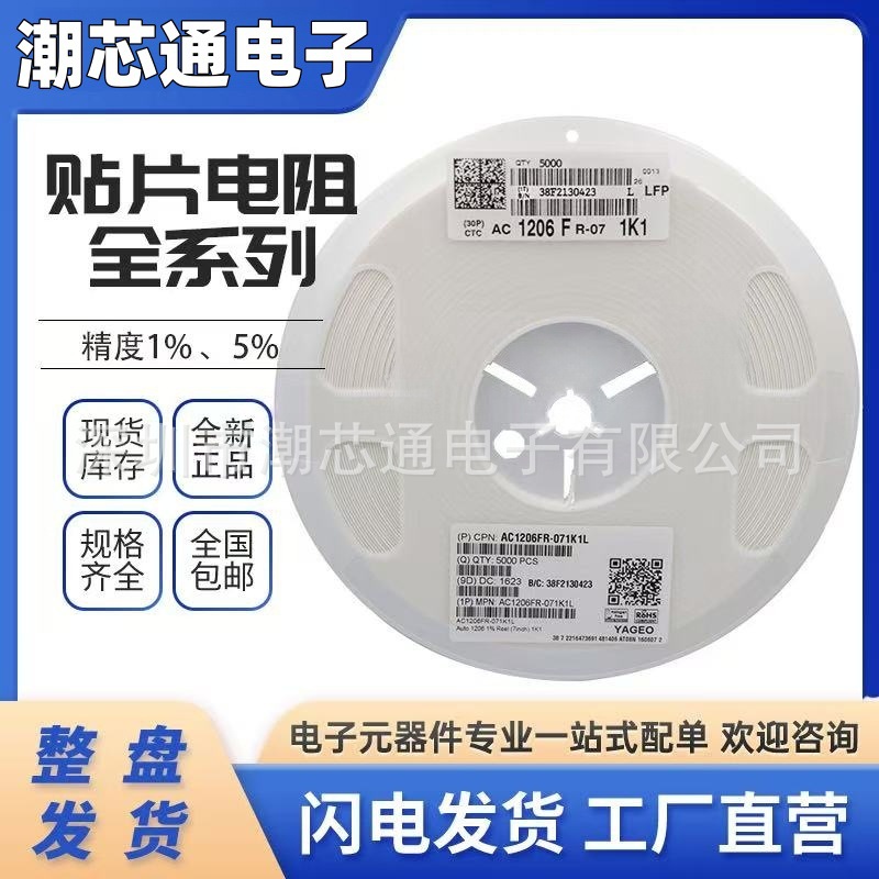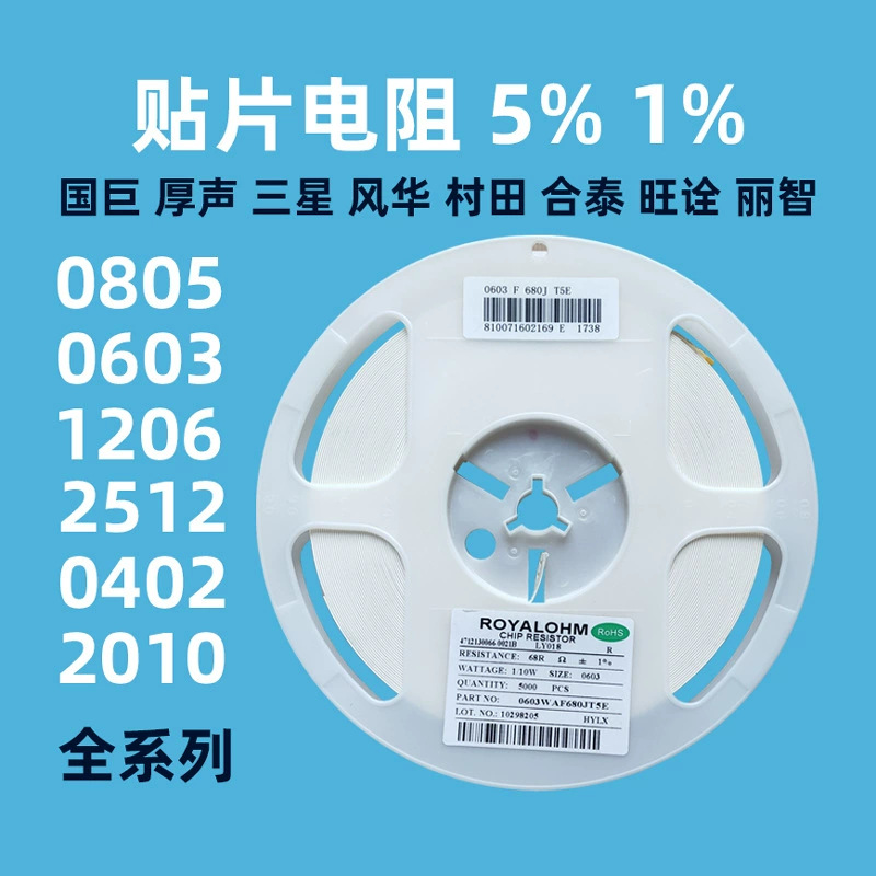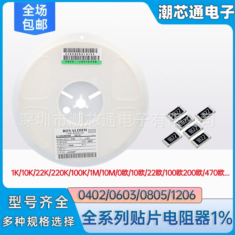 贴片电阻 0603 0805 1206 1% 5% 整盘 0R 1K 2K100R10K22K510欧1M