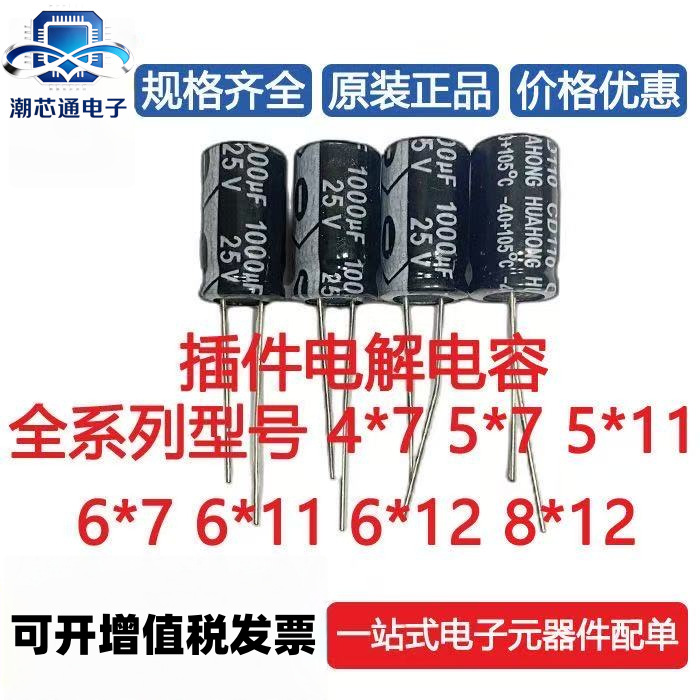 直插铝电解电容6*5-10V220UF路由器主板电脑电容器有极性耐高温