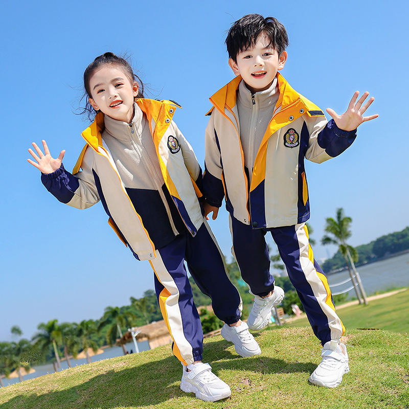幼儿园园服秋冬装冲锋衣三合一儿童加绒运动套装中小学生校服班服