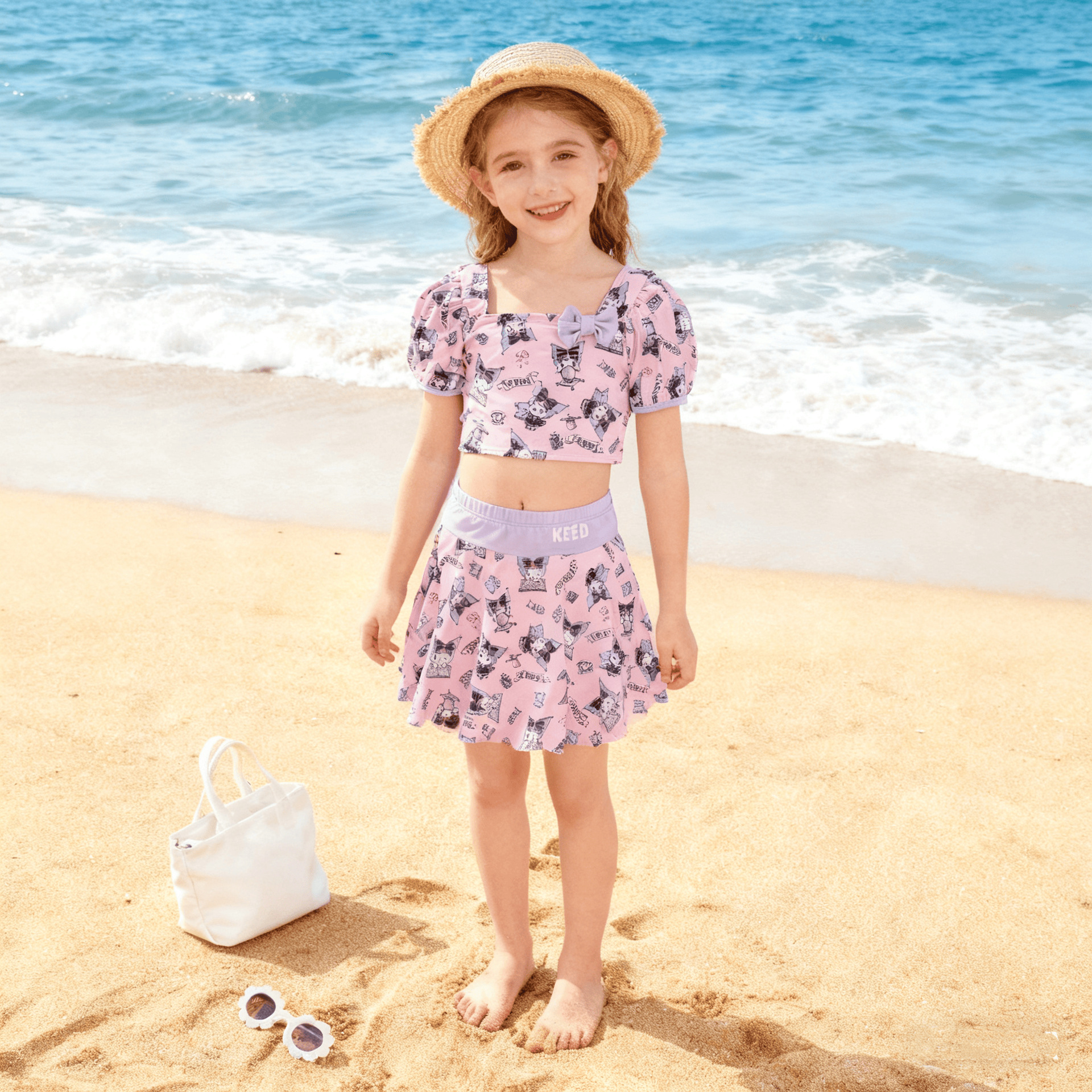 儿童泳衣女童夏季中小童公主连体卡通库洛米可爱浮力背心游泳衣