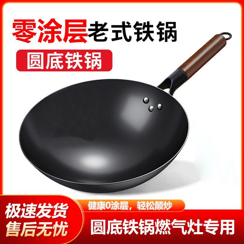 三代氮化铁锅锻打无涂层铁锅不沾锅家用爆炒铁锅老式轻巧炒锅代发