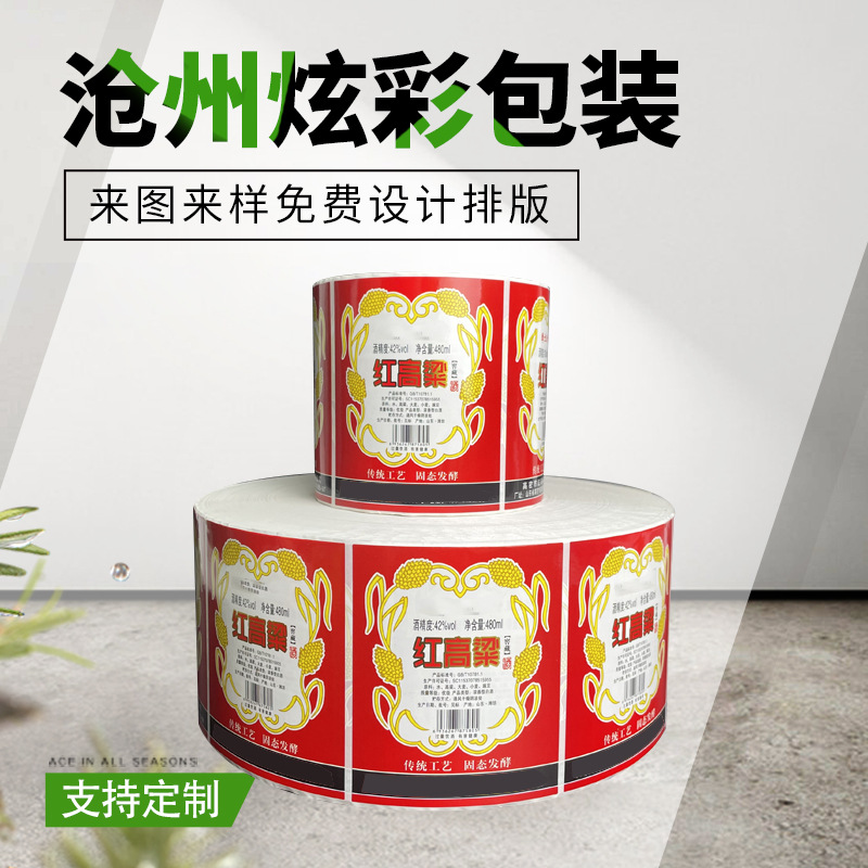 供应卷筒不干胶标签酒水饮料不干胶瓶贴食品标签贴纸广告封口贴