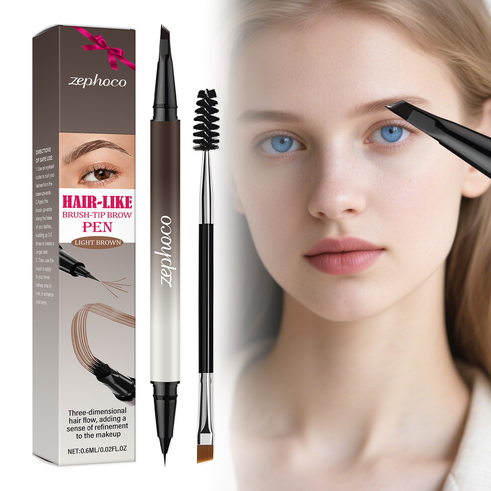 zephoco自然浅棕眉笔 眉笔眉刷双头设计日常通勤淡妆打造立体眉形
