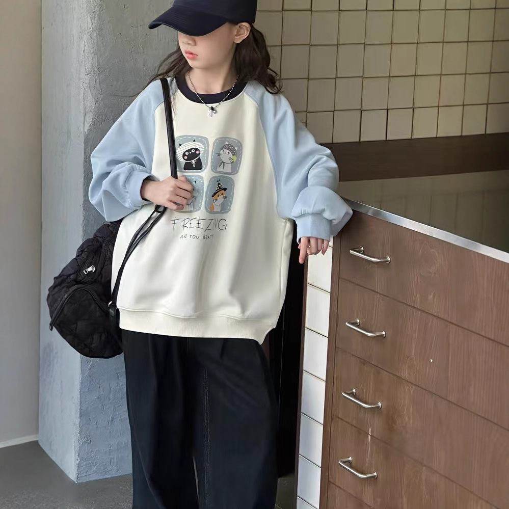 女大童装夏季新款2025韩系中大童拼色打底卫衣儿童休闲大气春秋装