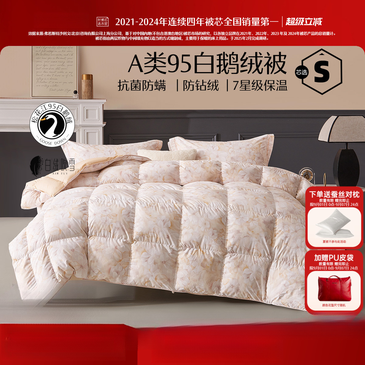 家纺羽绒被95白鹅绒春秋被加厚保暖冬被抗菌蓬松被子结婚被芯