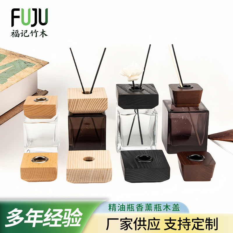 玻璃瓶香水瓶盖子圆柱形圆形螺纹精油瓶木盖无火藤条木艺