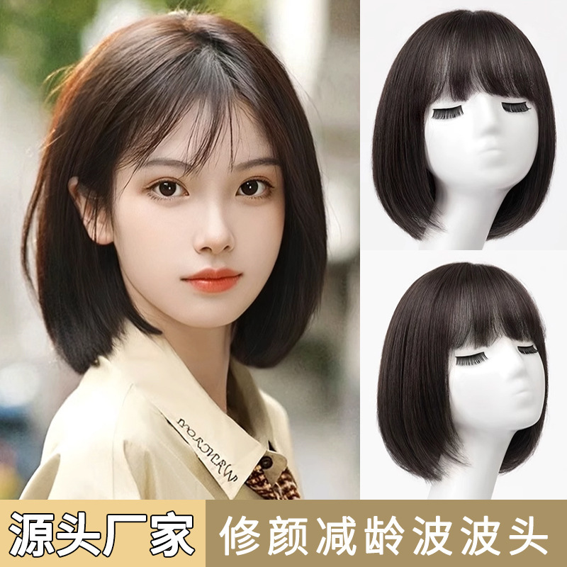 前顶递针空气新款波波头全头头套全真人发自然整顶长发造型假发